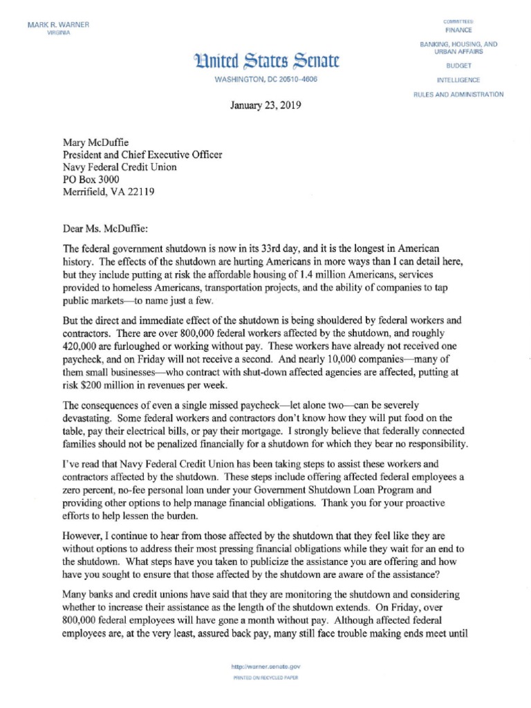 1 23 19 Navy Federal Shutdown Letter